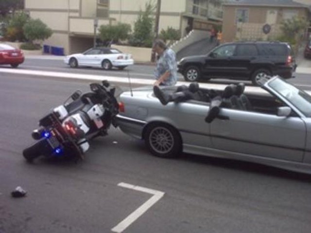 Įdomus ir sudėtingas įvykis įvyko Kalifornijoje, kai Brianas Hitchcockas, vairuodamas savo kabrioletą BMW 328i, susidūrė su netikėta situacija. Po to, kai jis paliko šviesoforą, jį užpakalyje atsitrenkė motociklo pareigūnas, kuris netikėtai nusileido jo automobilio galinėje sėdynėje. Liudininkas užfiksavo šį neįprastą įvykį ir nuotrauka greitai tapo virusinė.